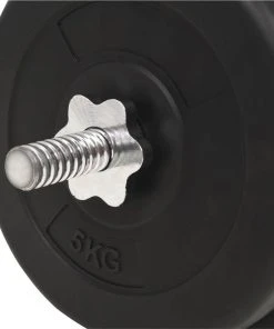This versatile barbell set is perfect for targeting chest, biceps, arms, triceps and back muscles. It includes two 7.5 kg plates, two 5 kg plates, and one 5.4 kg barbell bar and has a total weight of about 30 kg. This set allows the users to variably select the weights they want to lift for different exercises. These plates are made of cement in the plastic shell and they can easily be secured onto the bars with the included star locks. The weight is clearly stamped on each plate for quick and easy identification.