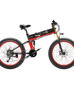 BEZIOR X-PLUS Electric Bike 1500W Motor 48V 17.5Ah Battery 26*4.0 Inch Fat Tire Mountain Bike 40Km/h Max Speed 200kg Load 130 KM Range LED Display IP54 Waterproof – Red