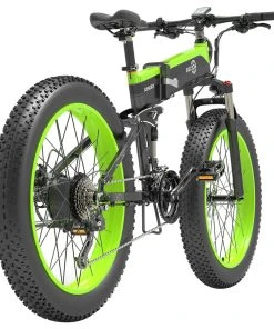 BEZIOR X1500 Folding Electric Mountain Bike 26*4.0 Inch Fat Tires 12.8Ah 48V 1500W 40Km/h 100KM Mileage Max Load 200KG Shimano 27-Speed Shifter – Black Green