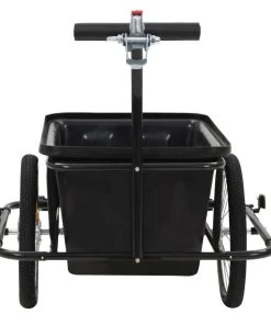 This versatile bike cargo trailer, together with a 50 L transportbox, is a perfect choice for local commutes or long-distance tours. This bike cargo trailer is made of steel which makes it very sturdy and durable. Meanwhile, it has a ball coupling design for quick attachment to the bike. Equipped with 2 handles on the drawbar, the cargo trailer can also be used as a hand wagon. The high-visibility coloured reflectors are designed to add for improved safety. Thanks to the removable transportbox with a large load capacity of 150 kg, the cargo trailer is ideal for carrying groceries, camping gear, sporting goods or whatever else you need to take with you. The product is easy to assemble.