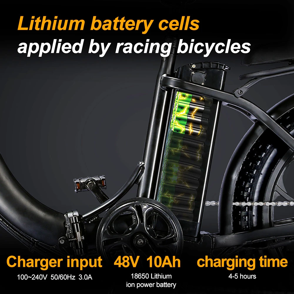 2. 10Ah 18650 lithium battery, the range can reach 35km in power ride mode, and 4-hour fast charging.