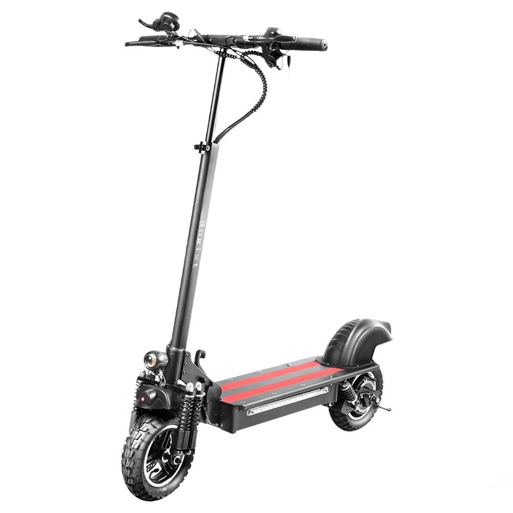 10-inch pneumatic front and rear tires help soften out rough surfaces and deliver a smoother ride on uneven terrain. Double shock absorption system(front and rear wheels) provides superior comfort over rough or uneven surfaces.