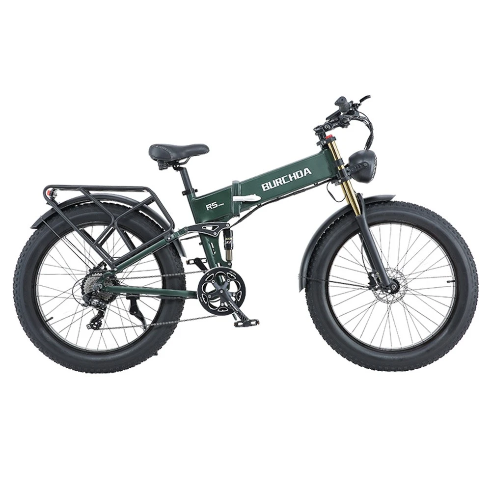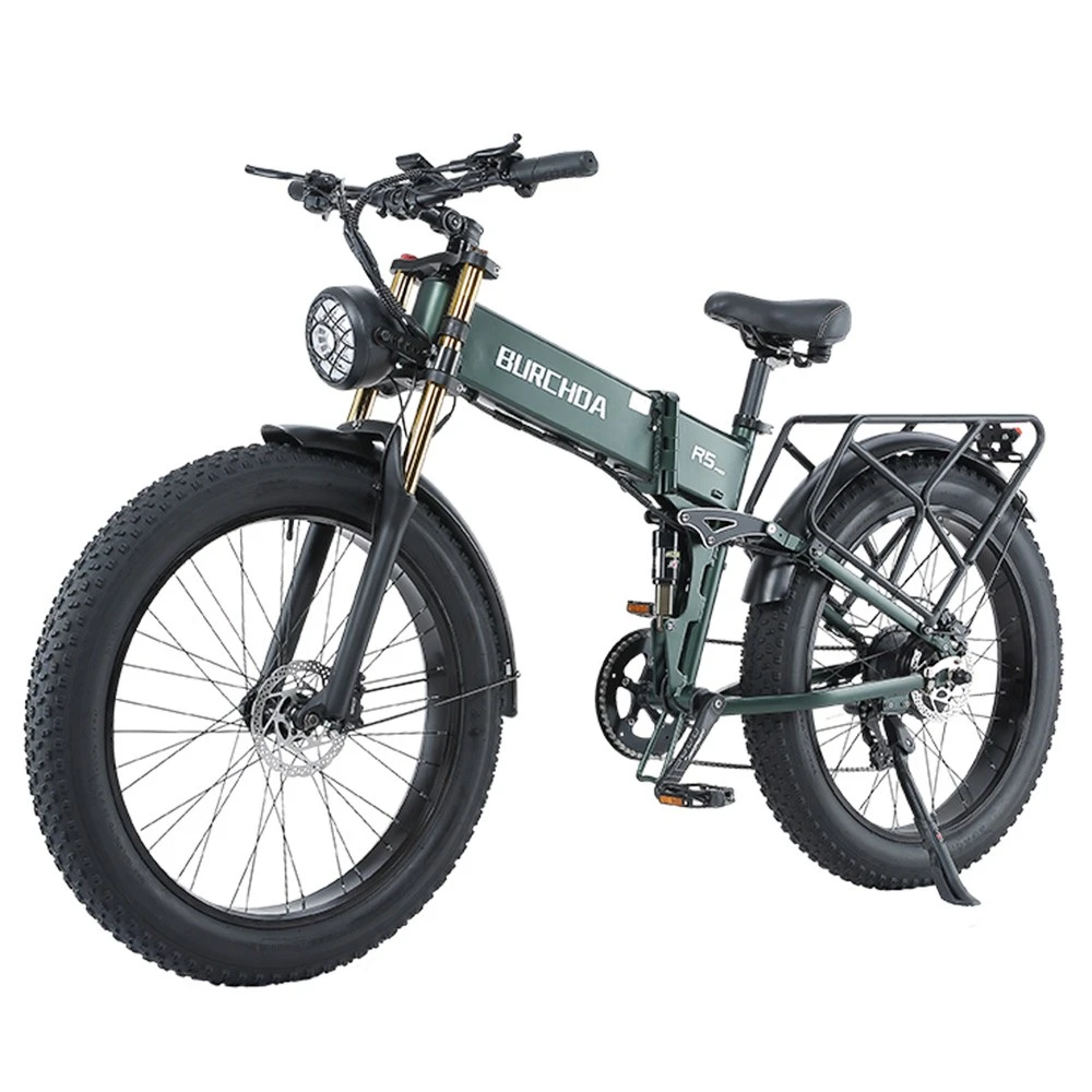 BURCHDA R5 Pro Folding Electric Bike 26*4.0 Inch Fat Tire 1000W Motor 50Km/h Max Speed 48V 15Ah Battery For 60km Range Double Shock Absorbers – Dark Green
