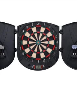 The electric dartboard offers lots of dart-playing fun for the home. Whether young or old, beginner or pro, this device is meant to satisfy every darts fan. Durable material: The electronic dartboard is made of polypropylene, which has strong resilience and a firm grip. Thus, the dart game is durable and of long-lasting service.Multiple game experiences: Featuring 26 games and 185 options, this dart machine provides multiple players with various dart options, which are suitable for children and adults with different difficulties. LCD display: Thanks to the LCD display and automatic scoring system, the trouble of manual scoring is eliminated, so that you can enjoy playing with this dart plate and have extra fun.Extra protection: In order to better extend the service life of the dart target game, this dartboard with an LCD display is designed with two side doors to increase the surrounding area. Additionally, two sides can be used to store darts.