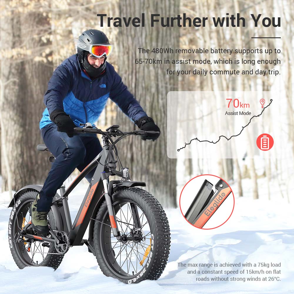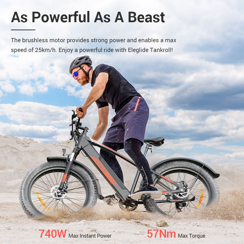Eleglide Tankroll comprises a powerful brushless motor with 57Nm torque that provides you with strong power and enables a maximum speed of 25km/h. With a replaceable 480Wh lithium-ion battery, it can run up to 65-70km(40.4-43.5mi) in assist mode, ideal for long rides.