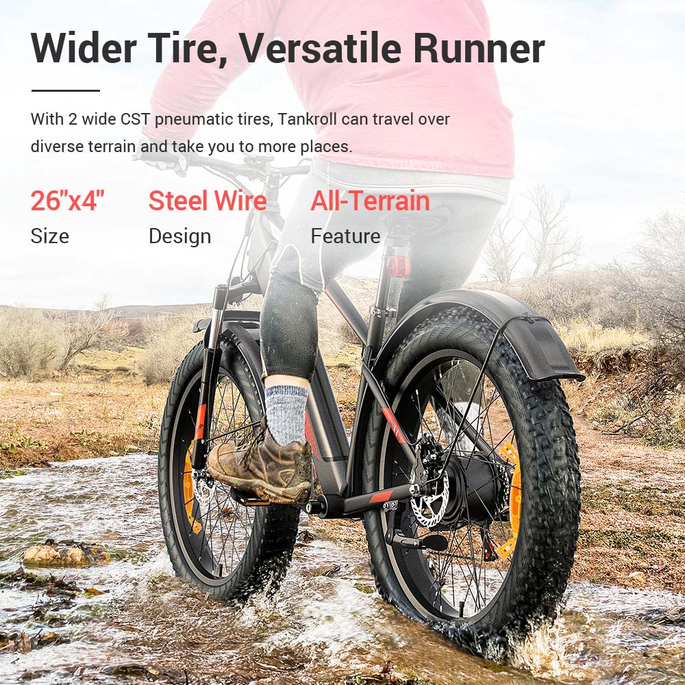 With a 26in diameter and a 4in width, the pneumatic fat tires are able to absorb the unevenness of terrain and roll smoothly over diverse terrain. With Tankroll, you can travel to more places.