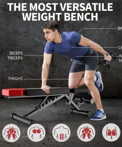 This workout bench can be put together in under 5 minutes. You can use this portable weight bench as a flat bench, an incline bench, a decline bench, an ab bench, or an upright bench for full-body exercises.