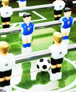 Host a professional table football game in the comfort of your own home with this football table. It is suitable for one-on-one competition or group play. The table is made of MDF and has stable legs, which make it convenient to use and it has a great price-performance ratio. The dimensions of the printed pitch conform to the official tournament standard, which gives you a realistic playing experience. The table is equipped with flexible sliding player rods with non-slip handles for easy and comfortable playing. The legs are adjustable in height for more flexibility. A complete table football game will be delivered, including 2 goals, 2 footballs, 2 scoreboards, 8 player rods and 22 players. Assembly is easy.