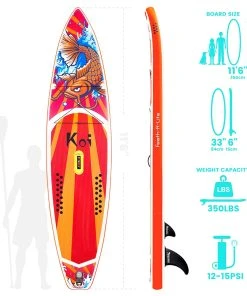 1. Stable guide: the inflatable stand up paddling board is 350Â x 84Â x 15 cm in size but very light only 12kg. Of course, our sups also holds up to a maximum safe pressure of 15-18Â psi. The maximum capacity is up to 150kg. Ideal for beginners and advanced users.