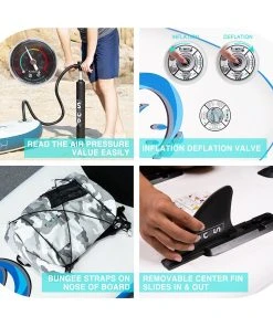4. Multifunctional inflatable SUP: paddle board use for beginners and advanced users, on the water you can safely place your bag or backpack on the board. The paddle board comes with a lightweight paddle aluminum paddle board that can be easily assembled and adjusted to your own size.