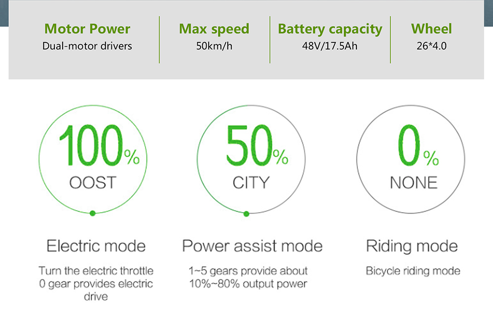 GF700 eBike offers three riding modes that vary in motor output and electric assist levels.
