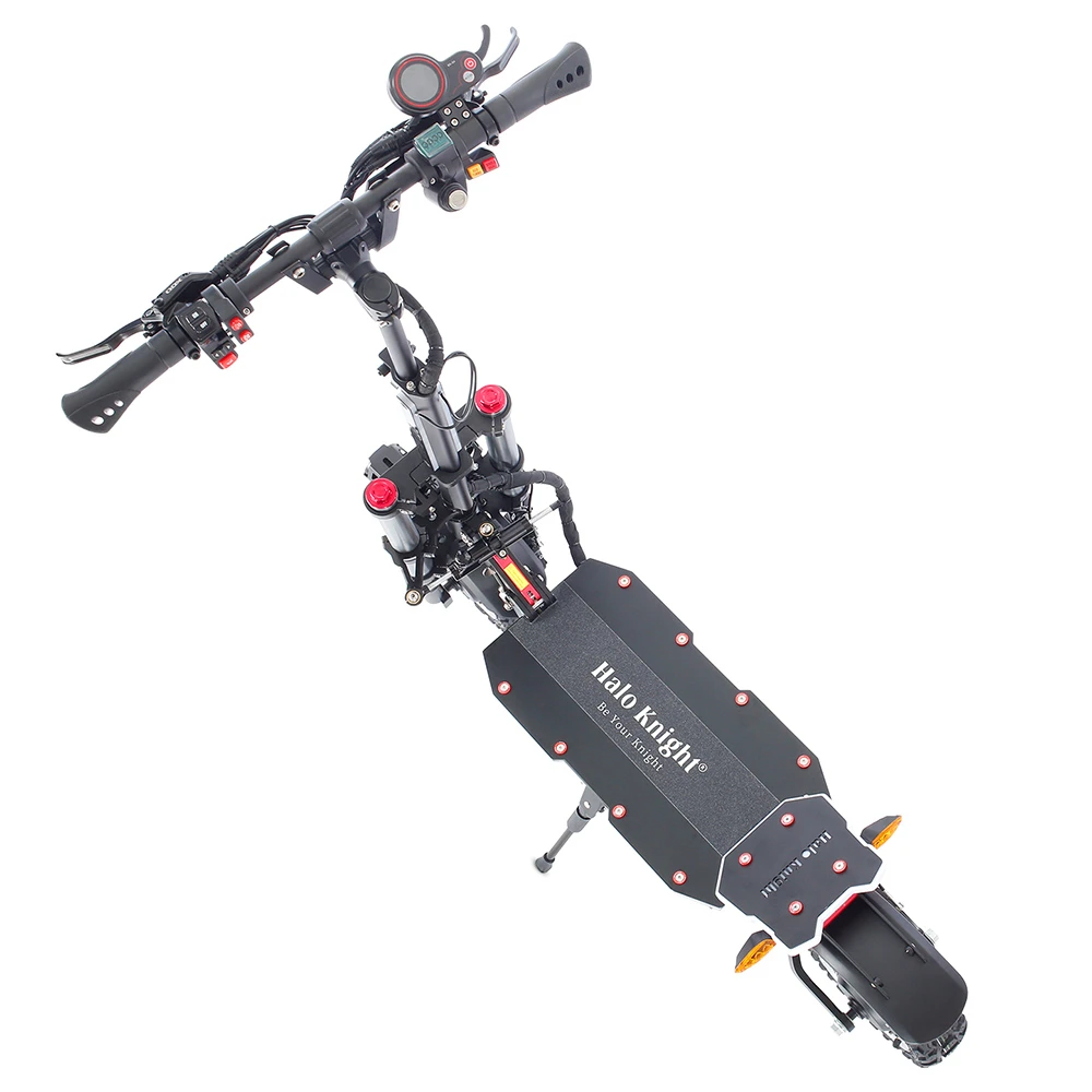 Halo Knight T107 Pro installs 2*3000W motors with the output of 6000W motor, and it can speed up to 95km/h.Â
