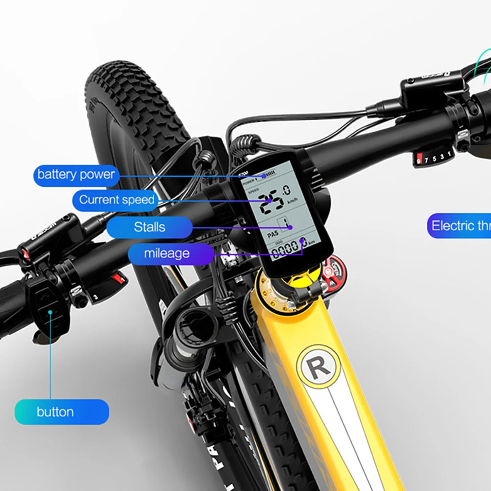 Equipped with an LED multi-function display, allowing you to access advanced settings. You can control your speed settings or develop walking assistance. 5 All information about PAS settings, speed, battery power and mileage. The LED display ensures that you can easily read statistics.