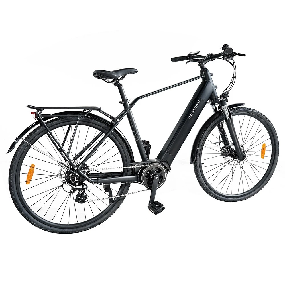 MAGMOVE city electric bike is powered by a Bafang 250W mid-mounted motor, it maximizes the balance of the bicycle while obtaining more power and torque, the overallity of the electric bicycle and the riding experience are better, max speed 25km/h = 15.6mph, it can easily climb 30° steep inclines and is very suitable for long distance cycling.