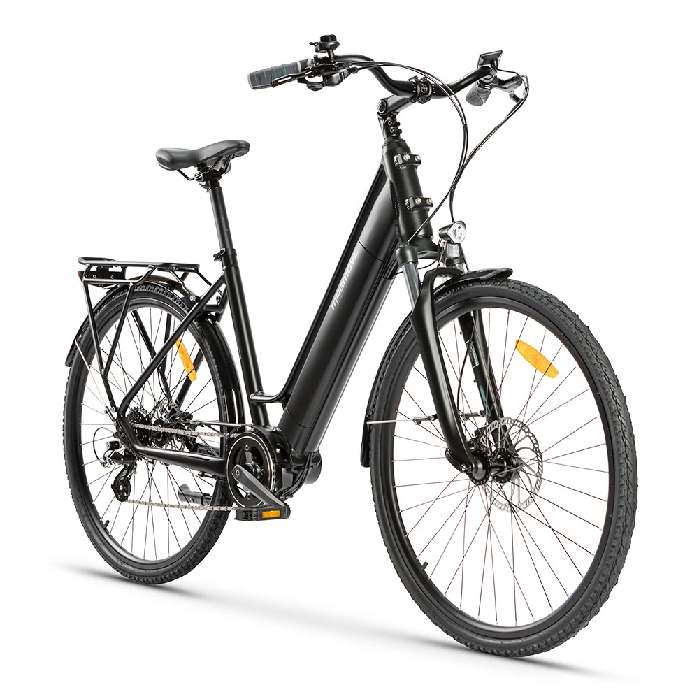 MAGMOVE city electric bike is powered by a Bafang 250W mid-mounted motor, it maximizes the balance of the bicycle while obtaining more power and torque, the overallity of the electric bicycle and the riding experience are better, max speed 25km/h = 15.6mph, it can easily climb 30° steep inclines and is very suitable for long distance cycling.