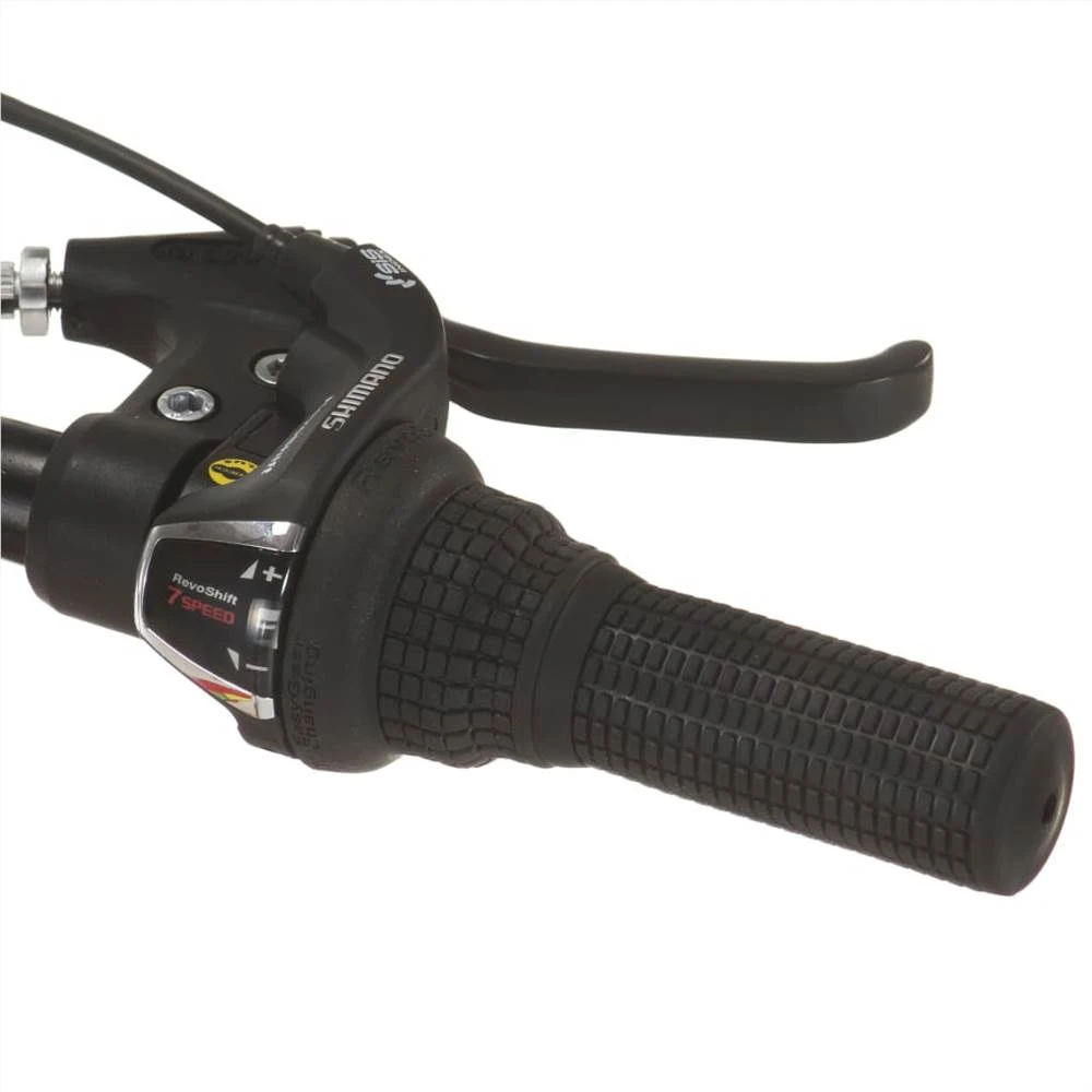 Hit your favorite trail with this mountain bike! This bike with 27,5″ fat tires offers you a smooth riding experience even on rough terrain. The steel frame and suspension fork keep the ride smooth, while strong and light aluminium rims provide added stability. Motivation comes in the form of a 21-speed drivetrain featuring a Shimano front and back derailleur. Tool-free adjustable seat post makes it easy to find a comfortable fit. You can ride high or cruise down low with great ease. The disc brakes are designed for crisp all-condition stopping.