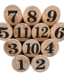 Throw, hit and score! This wooden number kubb game set will enable you to have a load of fun with your family and friends. Made of solid pinewood, these number kubbs and throwing baton are exceedingly durable and well suitable for outdoor game. Number kubb is an exciting outdoor game for 2 or more people, the more the better! Delivery includes 12 number kubbs, 1 throwing baton and 1 carrying bag.