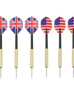 - Dart material: Steel tip + PET flight + brass-coated barrel