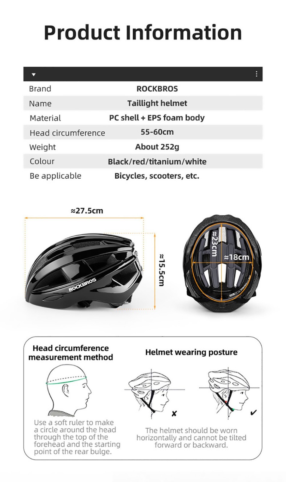 ROCKBROS Bicycle Helmet With Integrated Taillight MTB Road Cycling Helmet – Black
