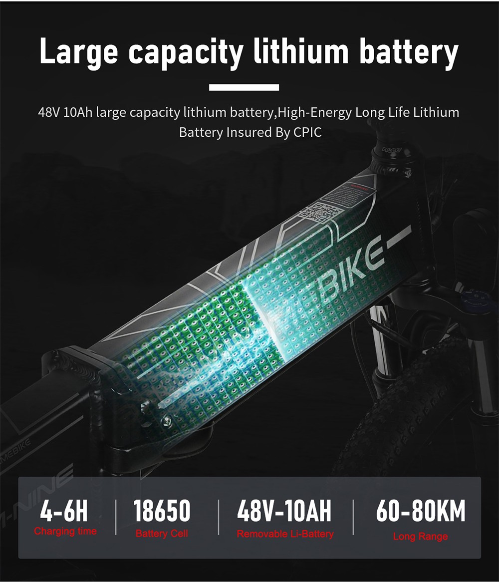 10Ah / 48V Li-ion battery ( included in the product ) for max 60-80km mileage on one charge.