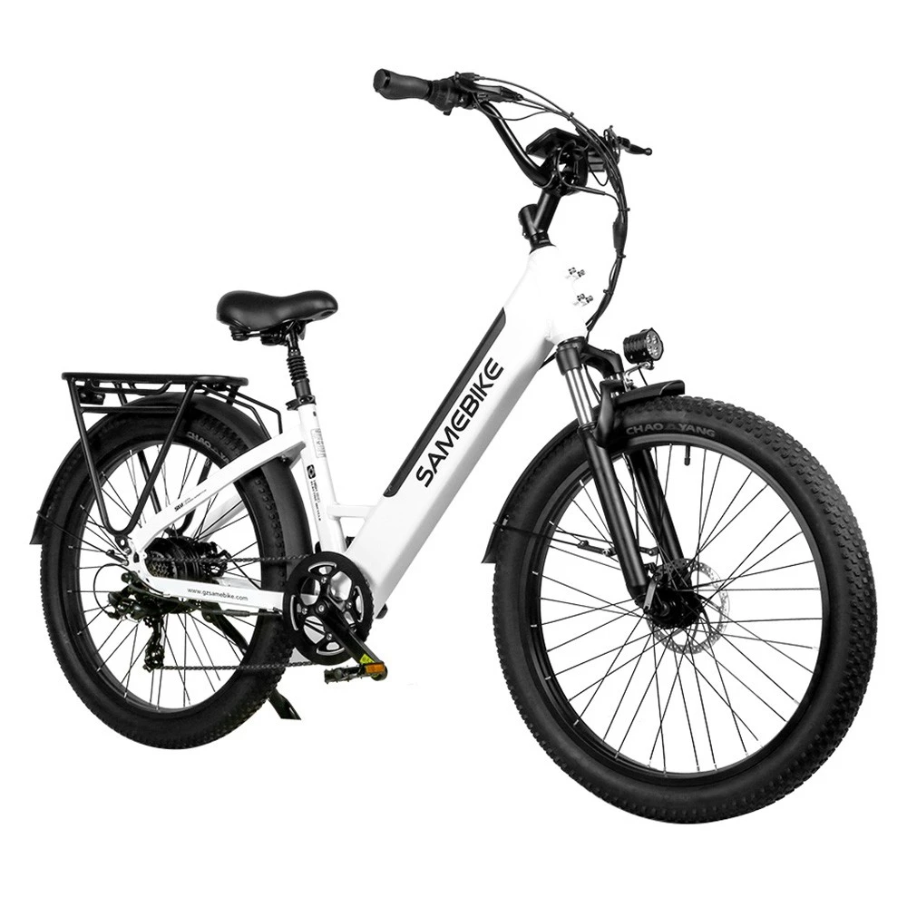 Samebike RS-A01 Electric Bike 750W Motor 70N.m 25-35km/h Max Speed 48V 14Ah Battery 26*3” Tires With Rear Rack – White
