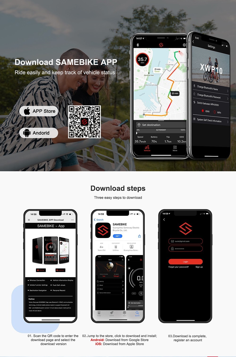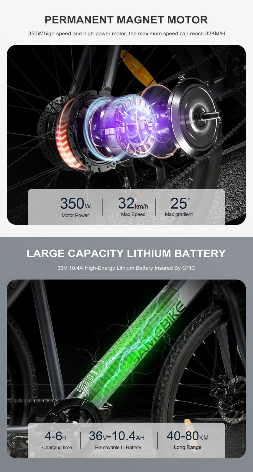 Adopt 18650 high performance car battery cell, Same battery, 40% more longer riding rang; 36v 10.4Ah stable and strong output. You can always enjoy a longer trip that takes you up to 30~50 miles on a single charge. With over charge and power off protection, It is globally insured by CPIC.