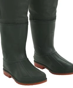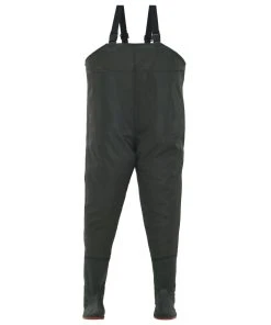 Stay dry while fishing with our chest wader pants. This exceptional coated polyester fabric is cozy and pliable inside, and simultaneously robust outside. Thanks to its stitched and sealed seams, as well as the attached boots, our wading pants are 100% waterproof. Additionally, the shoulder straps enable you to make the fishing pant fit perfectly without a hitch.